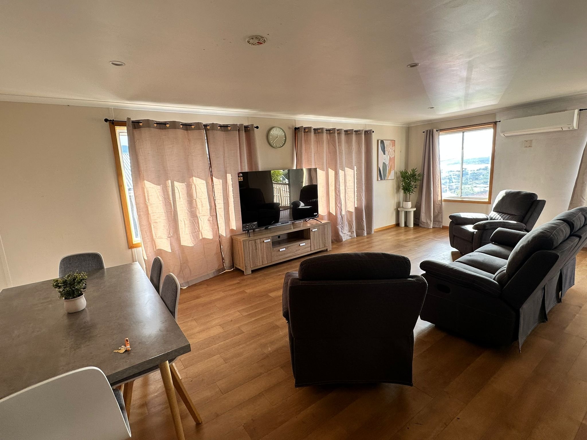Some stairs up to the house but flat once in the house. It has a HUGE bathroom and has a comfy but blokey vibe.